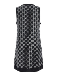 Gucci Women Black Sleeveless Mini Dress With Round Neck In Gg Canvas Woman