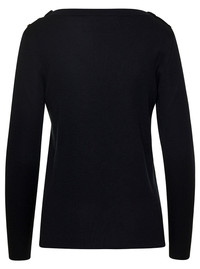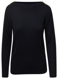 Black Sweater With Boat Neckline And Golden Logo Buttons In Cashmere Woman
