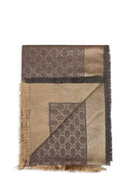 Gucci Women Brown And Beige Gg Silk And Wool Shawl