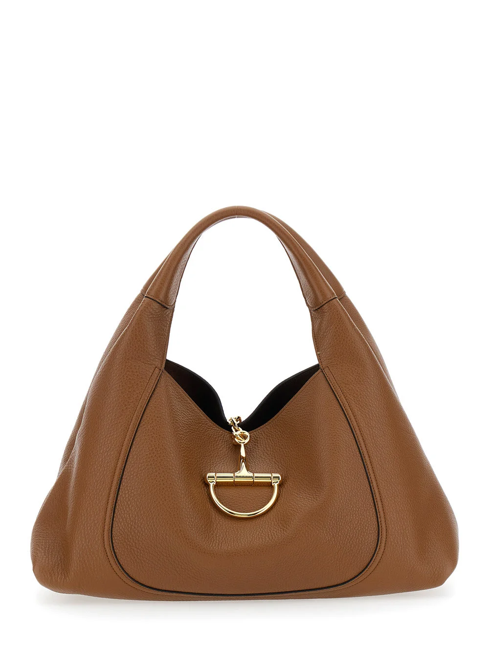 Gucci Women Brown Shoulder Bag With Horsebit Closure In Grained Leather Woman