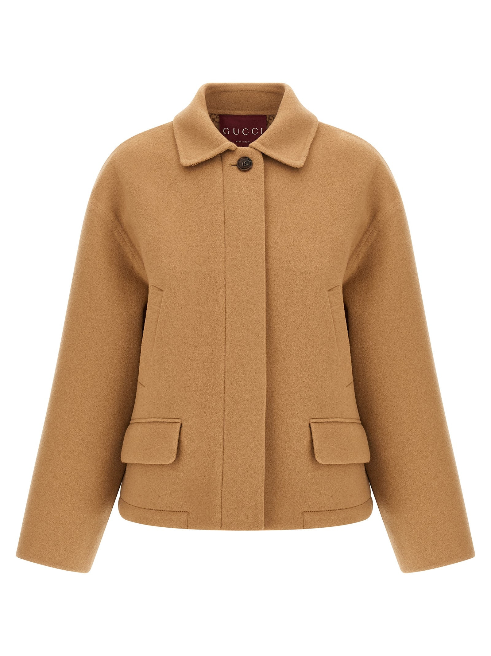 Short wool and silk coat, GG monogram lining, caban model, shirt collar, front zip closure, pockets, long sleeves with dropped shoulders, drawstring on the hem. Relaxed fit 99% wool 1% silk SKU: 823859Z7ASL2668 Our Products Are 100% Genuine. In All Cases We Stand By The Authenticity Of Every Product Sold On Our Site. All sales are final and we only accept returns for quality issue. Buyer is responsible for any import tax/duty if applicable.