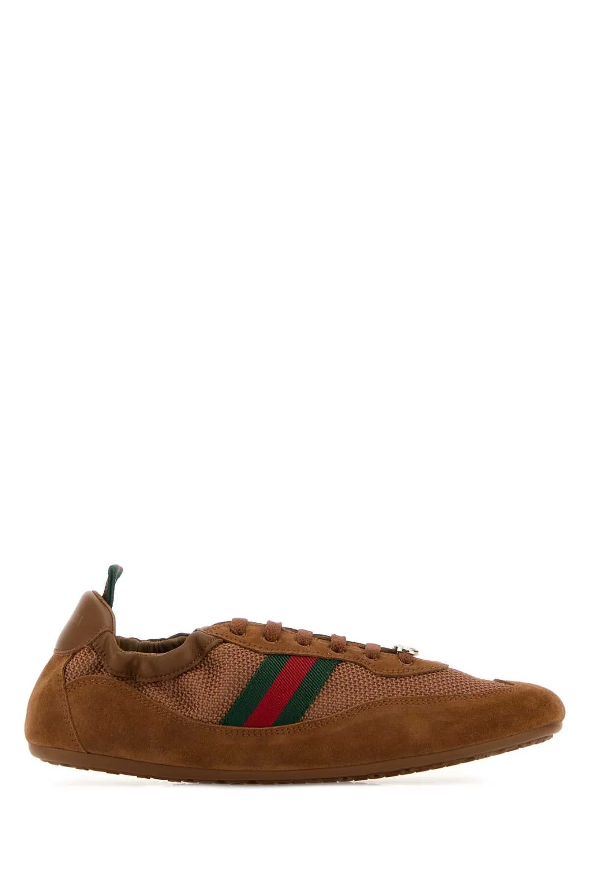 Gucci Women Caramel Fabric And Suede Gucci Shift Sneakers