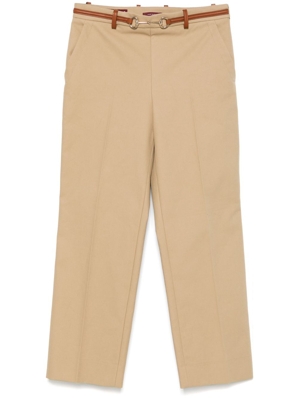 DESCRIPTION ::GUCCI beige horsebit cotton drill trousers with brown leather trim, belt loops, side pockets, back pockets, pleated design and hidden zip fastening.MADE IN::ItalyCOLOR::BEIGE SKU: 820466Z8BZI2502BEIGE Our Products Are 100% Genuine. In All Cases We Stand By The Authenticity Of Every Product Sold On Our Site. All sales are final and we only accept returns for quality issue. Buyer is responsible for any import tax/duty if applicable.