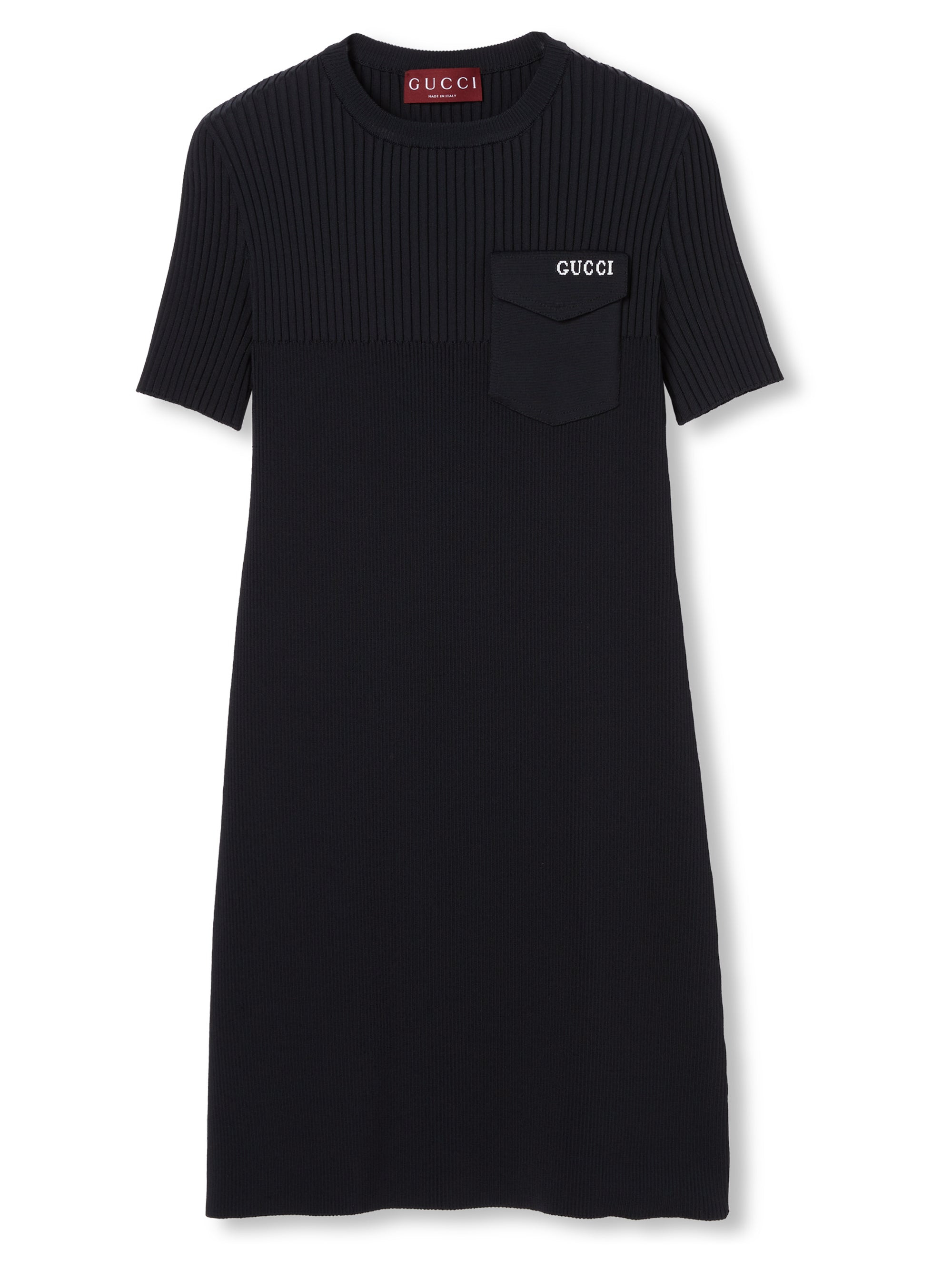 DESCRIPTION ::GUCCI black ribbed cotton dress with intarsia, crew neck, short sleeves, chest pocket and ribbed trim.MADE IN::ItalyCOLOR::BLACK SKU: 828139XKEV21070BLACK Our Products Are 100% Genuine. In All Cases We Stand By The Authenticity Of Every Product Sold On Our Site. All sales are final and we only accept returns for quality issue. Buyer is responsible for any import tax/duty if applicable.