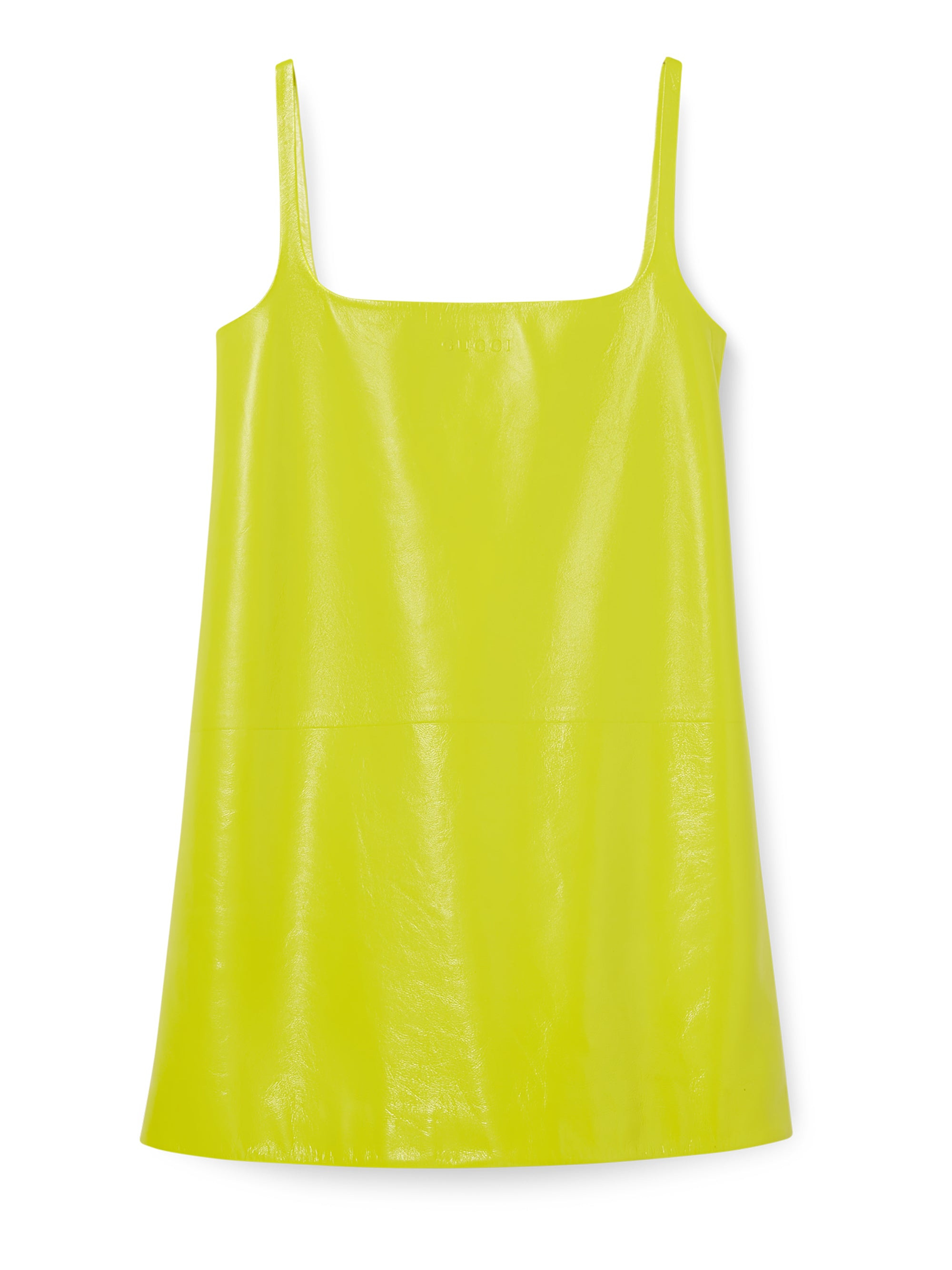 DESCRIPTION ::GUCCI acid green flared mini dress in shiny leather with embossed logo on the front, with lining, square neckline, thin shoulder straps and side zip closure with logo-engraved zip puller.MADE IN::ItalyCOLOR::GREEN SKU: 829997XNA683753GREEN Our Products Are 100% Genuine. In All Cases We Stand By The Authenticity Of Every Product Sold On Our Site. All sales are final and we only accept returns for quality issue. Buyer is responsible for any import tax/duty if applicable.