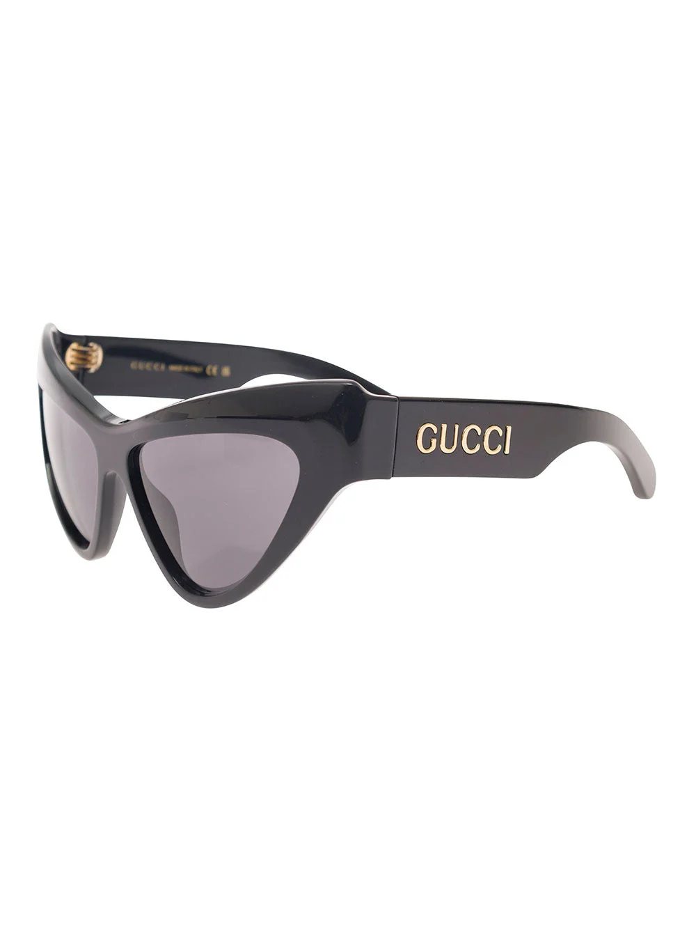 Sunglasses Cat-eye frame Logo lettering detail on temples Gold-colored metalware Grey lenses Black Shiny finish Acetate SKU: 733344J07401012 Our Products Are 100% Genuine. In All Cases We Stand By The Authenticity Of Every Product Sold On Our Site. All sales are final and we only accept returns for quality issue. Buyer is responsible for any import tax/duty if applicable.