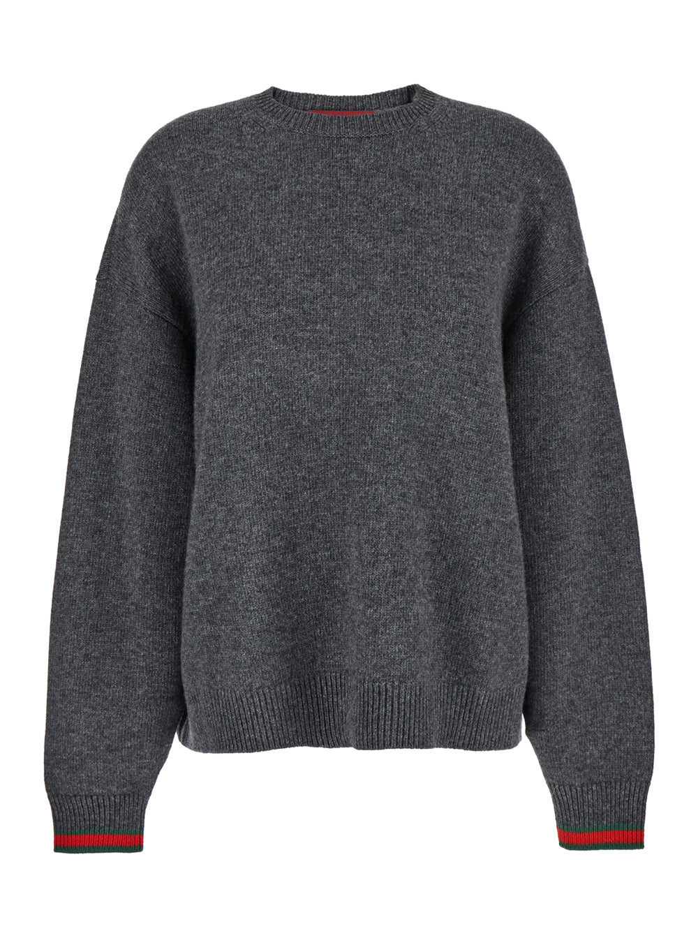 Gucci Women Grey Crewneck Sweater With Web Detail On The Cuffs In Wool And Cashmere Blend Woman