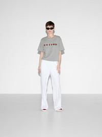 Gucci Women Grey Crewneck T-Shirt With Logo Lettering And Web Detail On The Front In Cotton Woman
