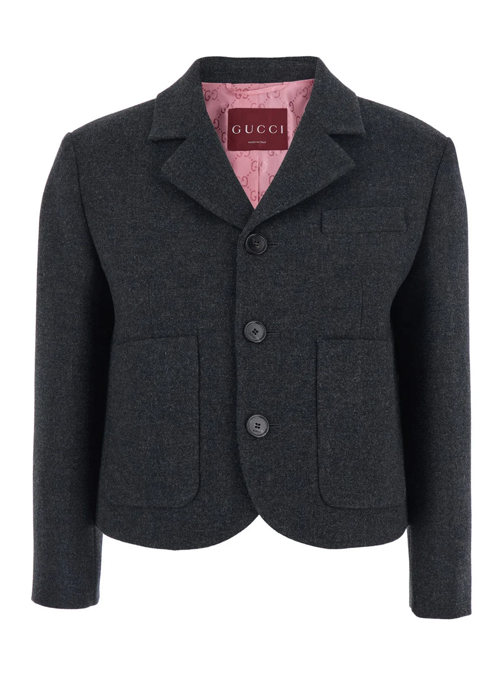 Gucci Women Grey Single-Breasted Jacket With Notched Revers In Wool Woman