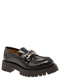 Loafers Round toe Interlocking G and chain detail Silver colored metalware Rubber lug sole Black Smooth leather SKU: 752650DS8001000 Our Products Are 100% Genuine. In All Cases We Stand By The Authenticity Of Every Product Sold On Our Site. All sales are final and we only accept returns for quality issue. Buyer is responsible for any import tax/duty if applicable.