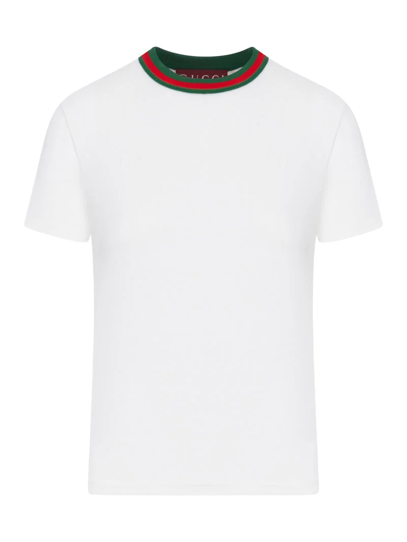 Gucci Women Jersey T-Shirt With Web Band