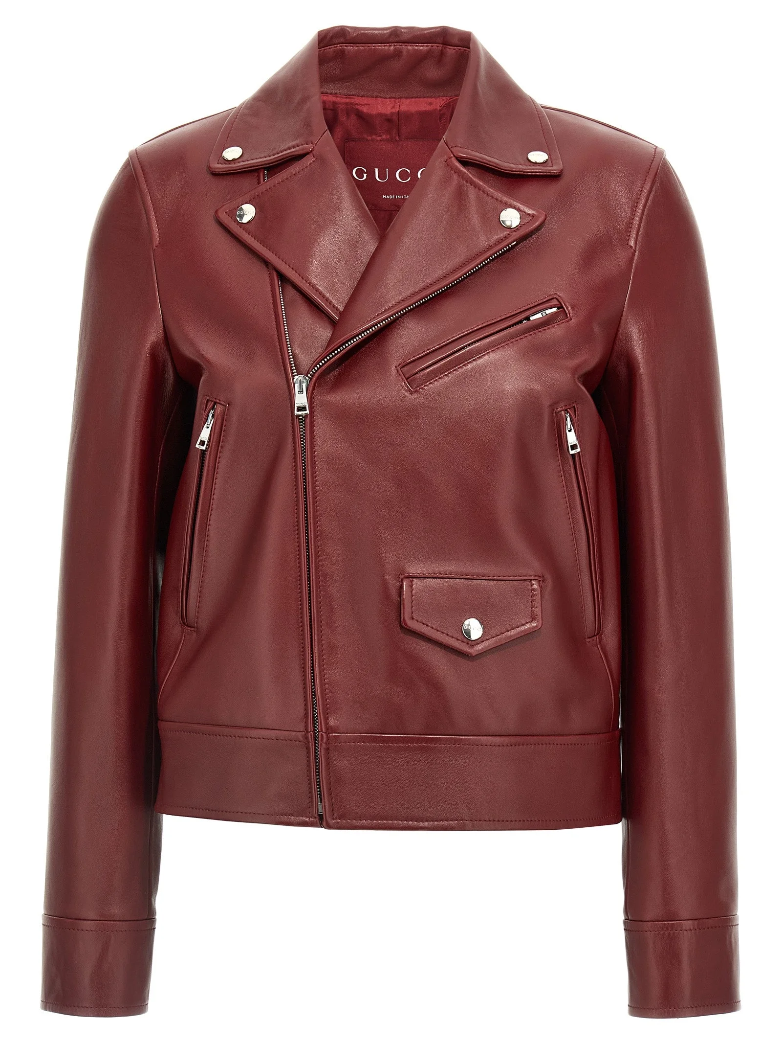 Leather biker jacket, peak lapels, snap button pockets, asymmetric zip closure, long sleeves with zip on the cuff, and embossed logo on the back. True to size fit 100% lamb leather (Ovis aries) SKU: 819314XN3366207 Our Products Are 100% Genuine. In All Cases We Stand By The Authenticity Of Every Product Sold On Our Site. All sales are final and we only accept returns for quality issue. Buyer is responsible for any import tax/duty if applicable.
