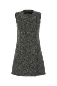 Gucci Women Melange Grey Wool Blend Mini Dress