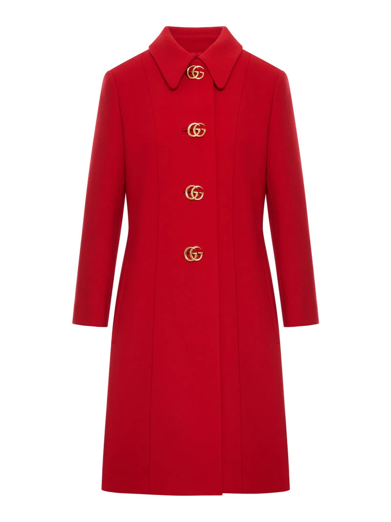 - Classic collar - Gold Double G button closure - Red natte wool - GG lining - Side pockets - Long sleeves - Length: 93cm, based on size 38 - Slim fit - 100% Wool - Color: Red Made in Italy Composition: Wool 100% wool Color code: 6544 FLAME 860471ZHW10 SKU: 860471ZHW106544FLAME Our Products Are 100% Genuine. In All Cases We Stand By The Authenticity Of Every Product Sold On Our Site. All sales are final and we only accept returns for quality issue. Buyer is responsible for any import tax/duty if applicable.