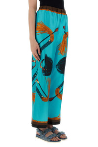 Equestrian-print silk trousers