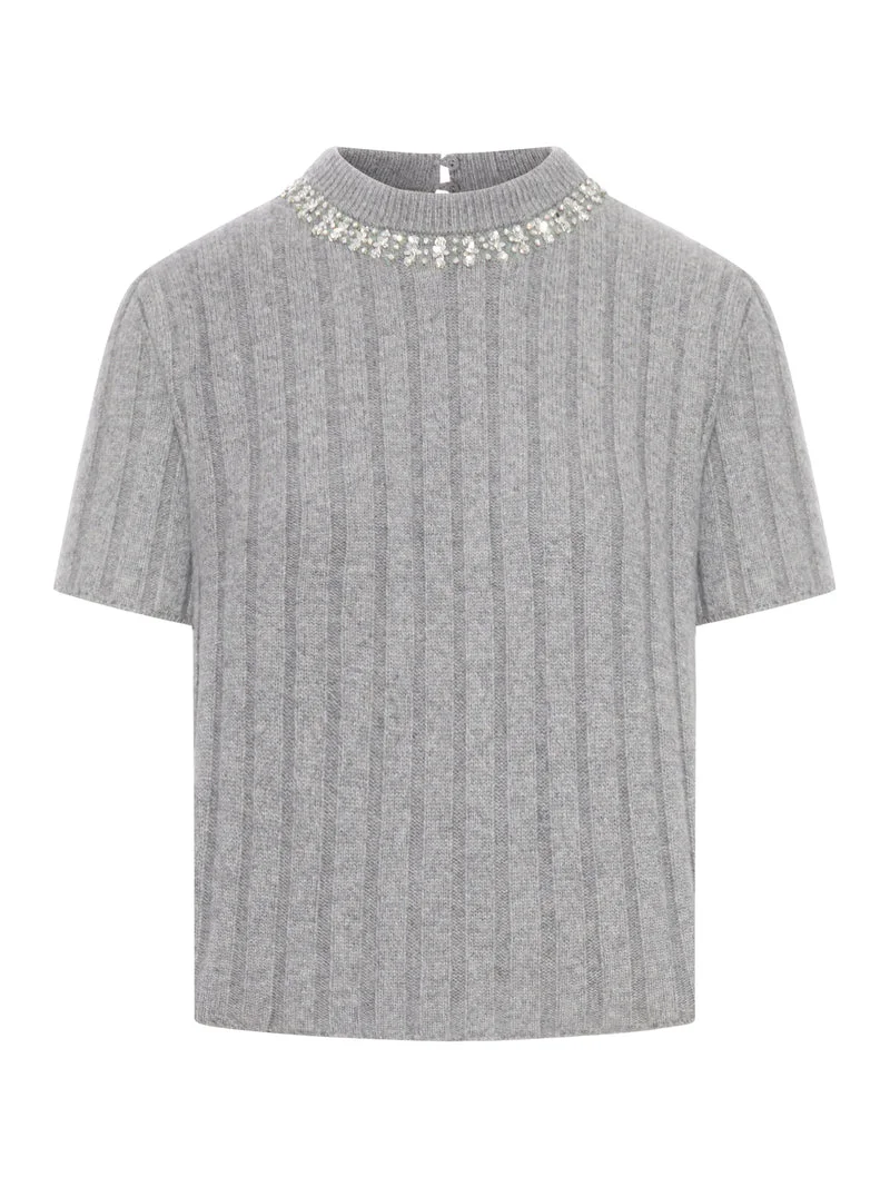 - Crew neck with jeweled details - Keyhole closure on the back with two buttons - Short sleeves - Regular fit - Wool blend - Color: Gray Made in Italy Composition: Wool 70% wool 30% Cashmere Color code: 1176 URBAN GREY MIX Size Type: STANDARD SKU: 850582XKFAZ Our Products Are 100% Genuine. In All Cases We Stand By The Authenticity Of Every Product Sold On Our Site. All sales are final and we only accept returns for quality issue. Buyer is responsible for any import tax/duty if applicable.