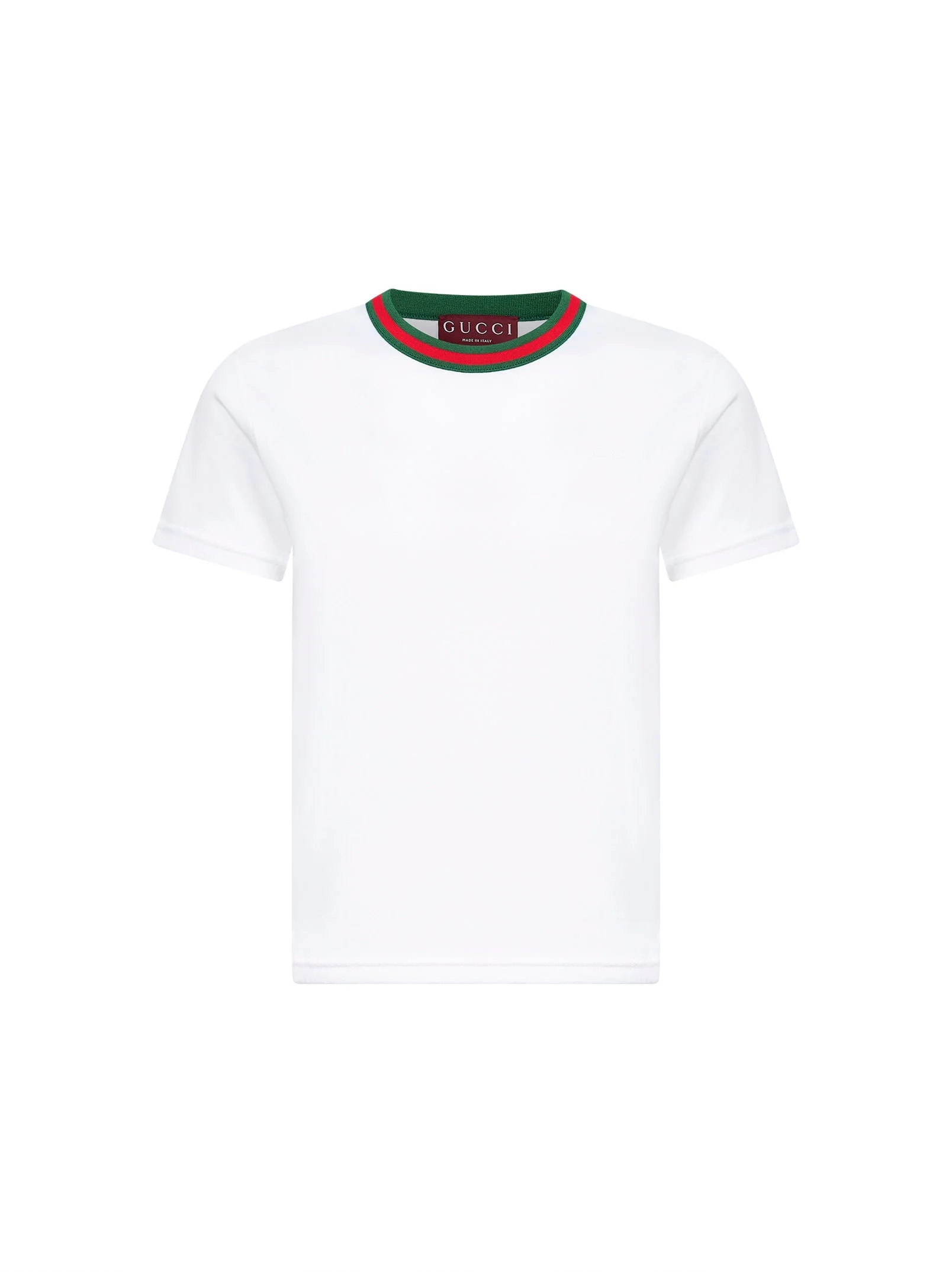 Gucci Women White Cotton Jersey Web Trim T-Shirt