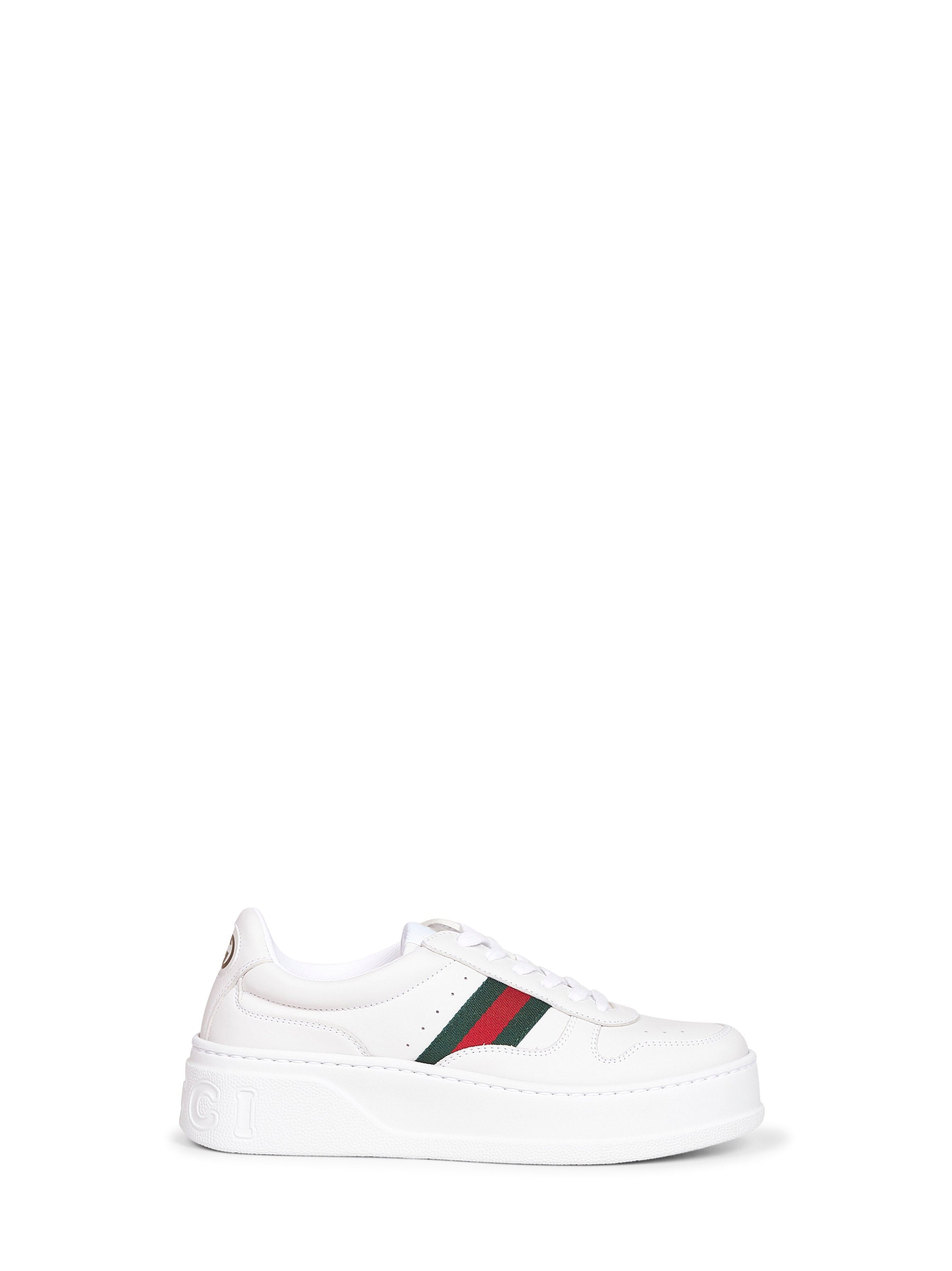 •Front lace-up fastening •Round micro-perforated toe •Logo label at tongue •Gold Interlocking Gucci logo at heel •Smooth leather upper with green and red Web detail at sides •Oversized chunky sole; Gucci lettering embossed at back •White color •100% Calf Leather •Made in Italy SKU: 848307upg409064 Our Products Are 100% Genuine. In All Cases We Stand By The Authenticity Of Every Product Sold On Our Site. All sales are final and we only accept returns for quality issue. Buyer is responsible for any import tax/duty if applicable.