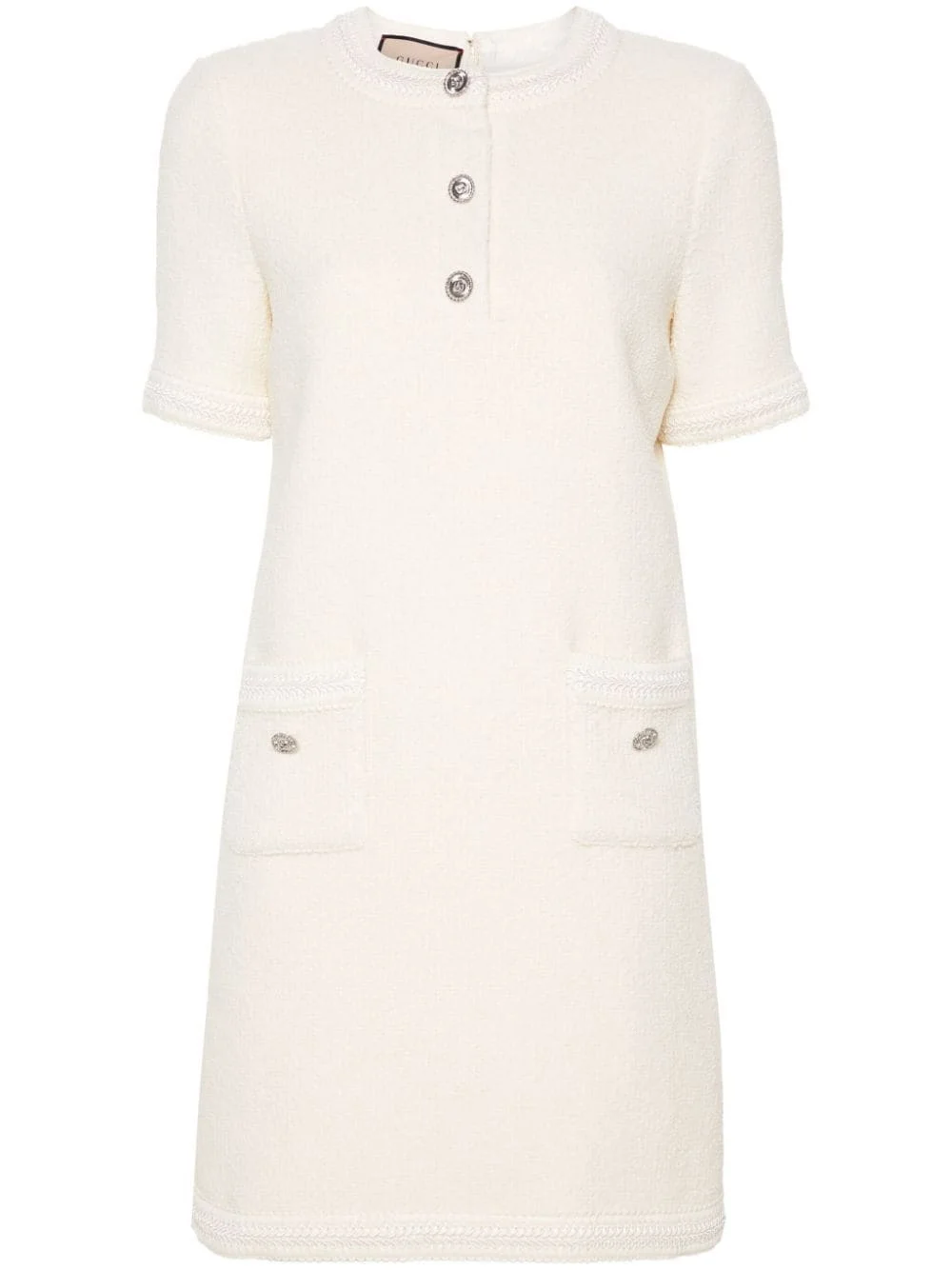 Description: short-sleeves wool tweed dress from Gucci featuring white, wool, tweed, signature interlocking CC logo buckle, crew neck, short sleeves, two front patch pockets, straight hem and above-knee length.Size & Fit: This piece fits true to size. We recommend you get your regular sizeModel is 1,75m / 5ft 8in wearing size 40 (IT)Made in: Italy Size Type: IT SKU: 770159ZAOMU9200 Our Products Are 100% Genuine. In All Cases We Stand By The Authenticity Of Every Product Sold On Our Site. All sales are final and we only accept returns for quality issue. Buyer is responsible for any import tax/duty if applicable.