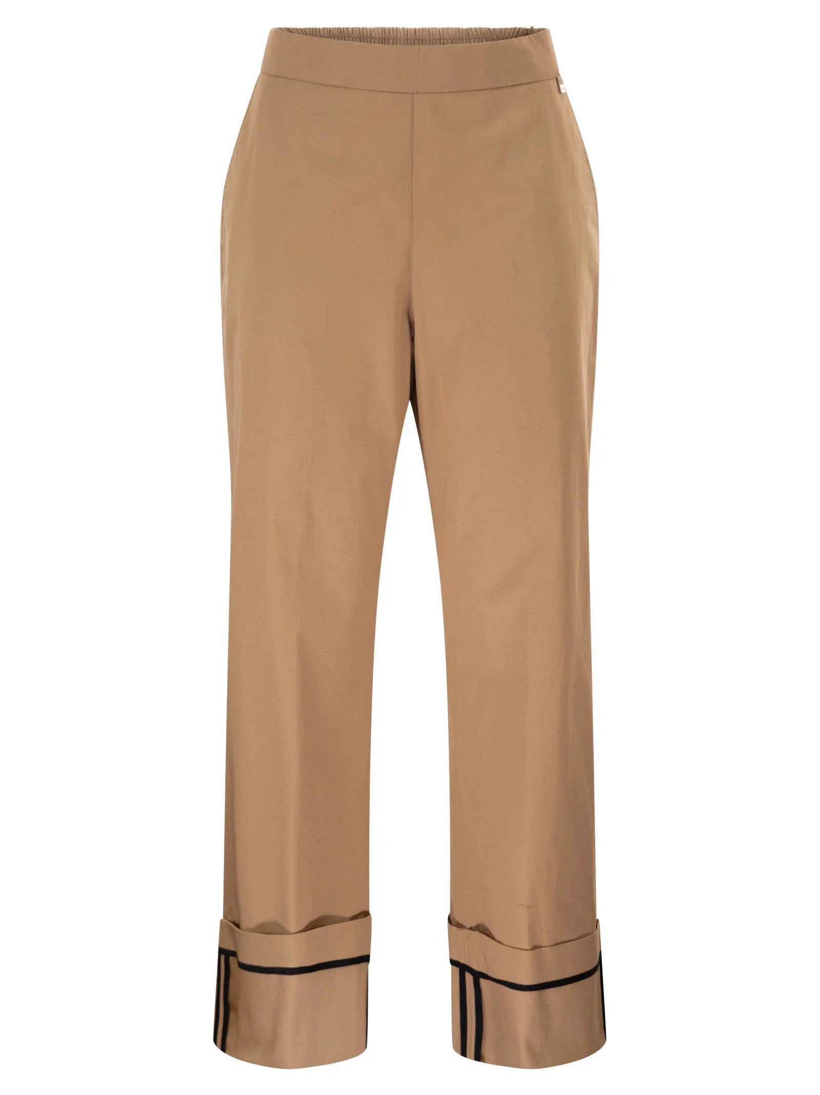 A fresh and sophisticated take on chinos, where the quality of natural cotton meets distinctive design details. These trousers feature a straight-leg silhouette that culminates in a striking maxi turn-up at the bottom, embellished with contrasting piping that echoes the luxury sportswear aesthetic. The elasticated waistband ensures a comfortable and versatile fit, adapting perfectly to different body shapes without compromising on a refined, tailored look. Ideal for a sophisticated everyday look, they strike the perfect balance between urban practicality and elegance. - Regular fit with straight leg - High waist with internal elasticated band for maximum comfort - Clean lines - Characteristic maxi turn-up at the hem - Two side welt pockets inserted into the seam - Breathable and durable cotton fabric - Discreet Herno logo detail on the side - Versatile design suitable for both formal and casual occasions DESIGNER ID: PT000206D13238 2157 100% Cotton Size Type: IT SKU: PT000206D132382157 Our Products Are 100% Genuine. In All Cases We Stand By The Authenticity Of Every Product Sold On Our Site. All sales are final and we only accept returns for quality issue. Buyer is responsible for any import tax/duty if applicable.