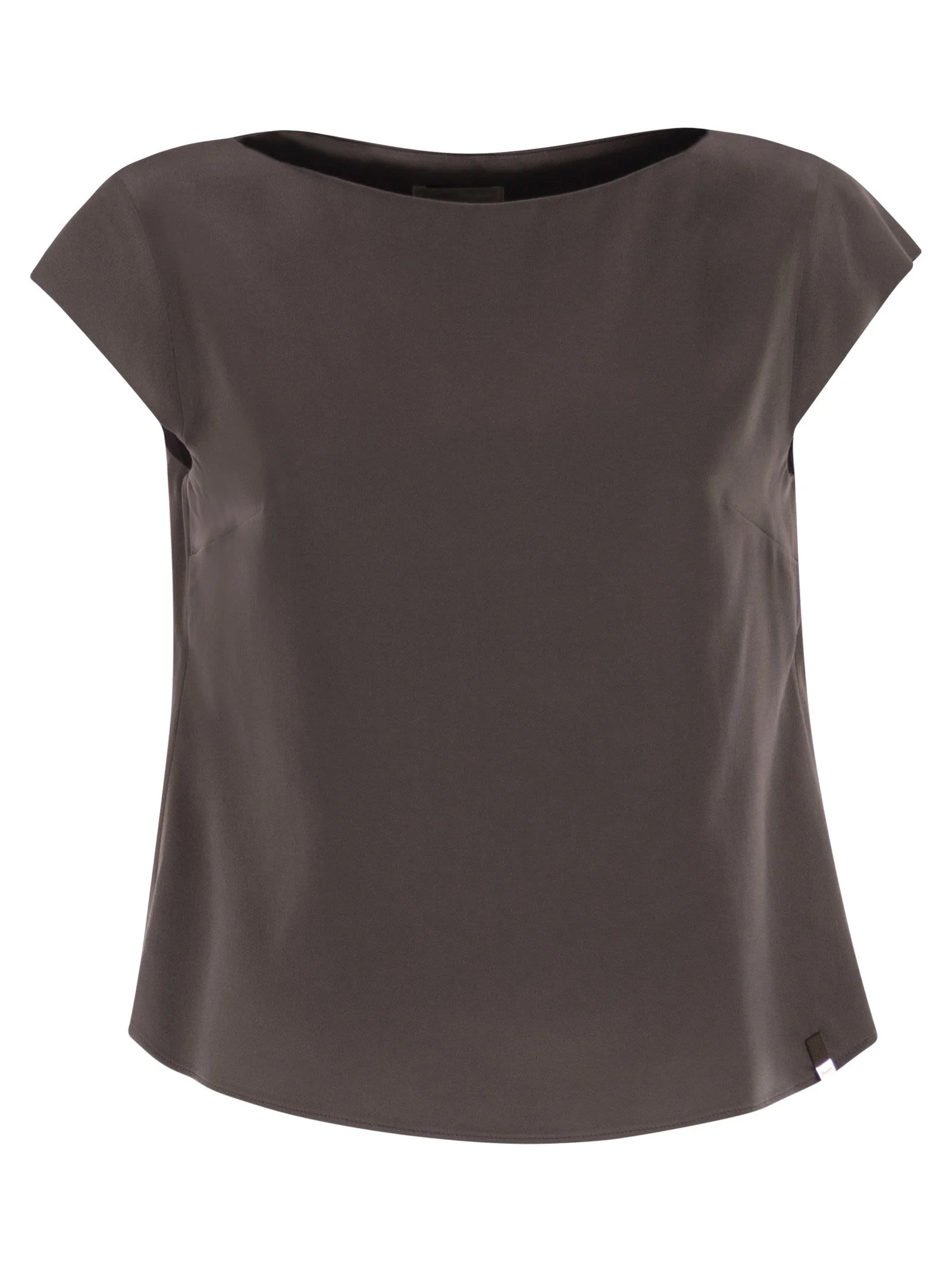 Blouse made from dyed satin with no WR finish. The fabric has a silky, elegant and refined look with an extra soft feel. Lightweight to wear under a blazer or with pyjama trousers depending on the occasion, this style has a relaxed fit that flatters the silhouette. - Regular fit - Boat neckline - Short sleeves - Herno logo at the bottom - Unlined DESIGNER ID: BL00009DR12727 8810 72% Acetate, 28% Viscose Trimming: 55% Cotton, 45% Polyester Size Type: IT SKU: BL00009DR127278810 Our Products Are 100% Genuine. In All Cases We Stand By The Authenticity Of Every Product Sold On Our Site. All sales are final and we only accept returns for quality issue. Buyer is responsible for any import tax/duty if applicable.