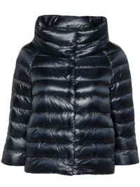 navy blue cotton-blend padded design high neck press-stud fastening three-quarter length sleeves straight hem Size Type: IT SKU: PI0046DIC12017Z9200 Our Products Are 100% Genuine. In All Cases We Stand By The Authenticity Of Every Product Sold On Our Site. All sales are final and we only accept returns for quality issue. Buyer is responsible for any import tax/duty if applicable.