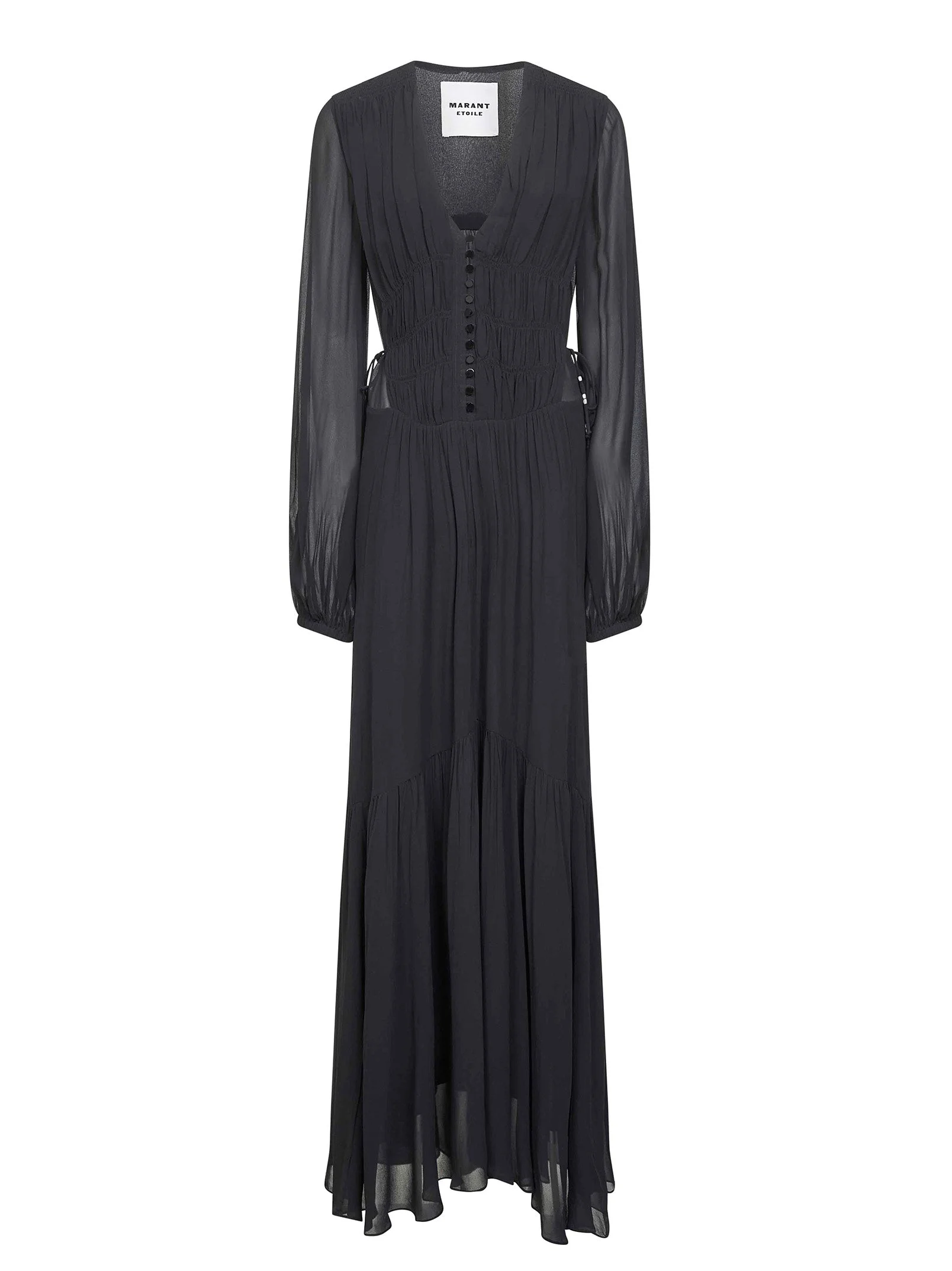 •Partial front button placket •V-neckline •Long sleeves, elasticated cuffs •Adjustable drawstring waist with side ties •Smocked details at front; back yoke with gathered detailing •Flounced skirt with gathered detailing at waist and bottom •Partially lined •Relaxed fit •Black color •100% Viscose •Made in Extra EU SKU: ro0798fac3j01e01bk Our Products Are 100% Genuine. In All Cases We Stand By The Authenticity Of Every Product Sold On Our Site. All sales are final and we only accept returns for quality issue. Buyer is responsible for any import tax/duty if applicable.