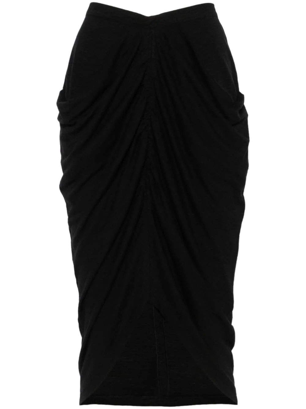 black jersey texture draped design concealed rear hook and zip fastening high waist ruched detailing two side slit pockets high-low hem mid-length Size Type: IT SKU: JU0233FAB3K02E01BK Our Products Are 100% Genuine. In All Cases We Stand By The Authenticity Of Every Product Sold On Our Site. All sales are final and we only accept returns for quality issue. Buyer is responsible for any import tax/duty if applicable.