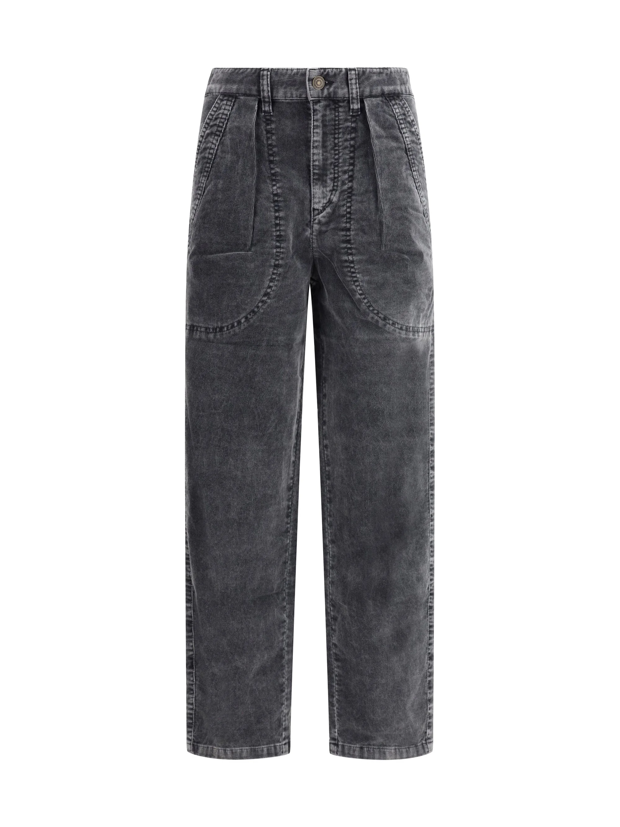 Marant Etoile's ribbed velvet Pants are made of delave velvet and are distinguished by their refined casual style. They feature a waistband with belt loops, a metal button and covered zipper closure, and delicate pleating at the front. Side pockets with rounded topstitching and patch pockets on the back add a functional touch. The design is completed by a leather label with embossed "Isabel Marant" logo on the back, a regular waist, and a wide, tapered cut. Size Type: FR SKU: PA0563FAC1G02E01VB Our Products Are 100% Genuine. In All Cases We Stand By The Authenticity Of Every Product Sold On Our Site. All sales are final and we only accept returns for quality issue. Buyer is responsible for any import tax/duty if applicable.