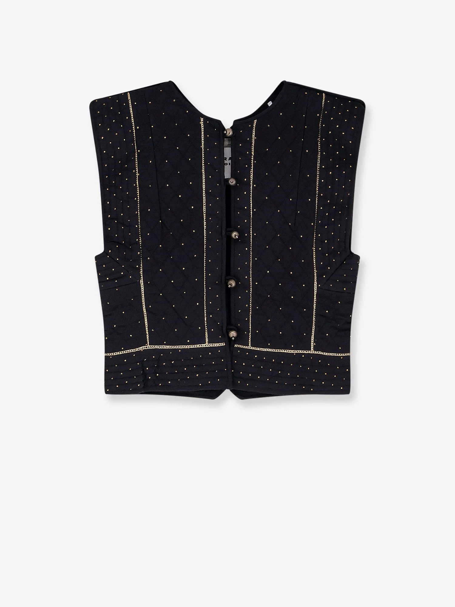 Brand: MARANT ETOILE Product reference:GI0078FA Color reference:D1J03E01BK Color:Black Season:26P Gender:Woman Category 1:Abbigliamento Category 2:Blazer and Gilet Made in:INDIA Closure with spherical buttons Sleeveless Lurex trim 100% organic cotton Filling: 100% polyester SKU: GI0078FAD1J03E01BK Size Type: NUM SKU: GI0078FAD1J03E01BK Our Products Are 100% Genuine. In All Cases We Stand By The Authenticity Of Every Product Sold On Our Site. All sales are final and we only accept returns for quality issue. Buyer is responsible for any import tax/duty if applicable.