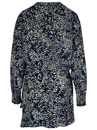 Habla Floral Asymmetric Long Sleeve Wrap Dress in Midnight/White