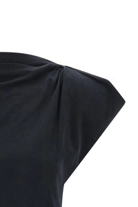 'Sebani' cotton t-shirt with asymmetric cut, boat neck, removable padded shoulders, short turned-up sleeves, side slits, asymmetrical hem. SUSTAINABLE: This product is made with organic cotton. Color: Black Size & Fit: true to size fit Composition: 100% cotton Made in: Portugal SKU: TS0097FAA1N41I01BK Our Products Are 100% Genuine. In All Cases We Stand By The Authenticity Of Every Product Sold On Our Site. All sales are final and we only accept returns for quality issue. Buyer is responsible for any import tax/duty if applicable.