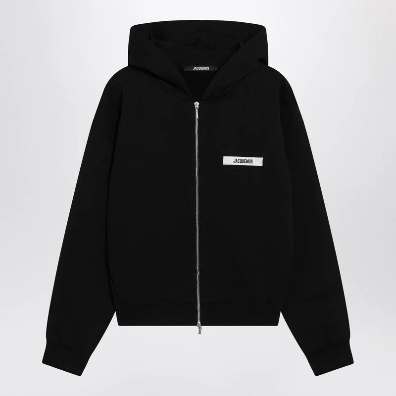Jacquemus Black Zip-Up Sweatshirt With Grosgrain Logo Men