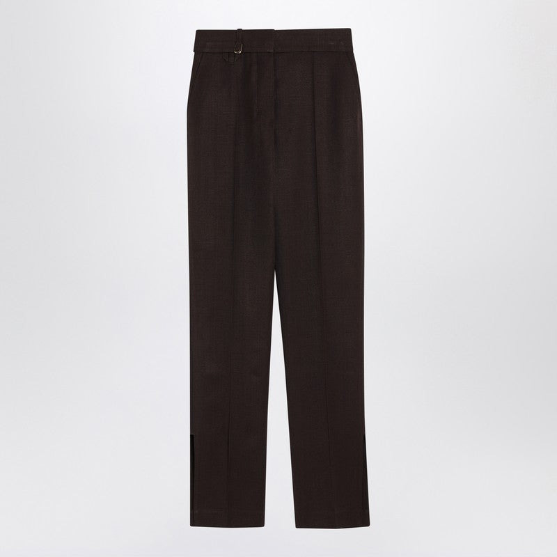 Jacquemus pants in dark brown silk blend, characterized by a front zip closure with hook, belt loops with metallic detail, two side welt pockets, two back welt pockets, high waist, front pleat, and side slits. Model wears size 36 FR Model measurements: Height: 179 cm Chest: 82 cm Waist: 65 cm Hips: 90 cm Size Type: FR Material: Cotton SKU: 24H243PA0381562/QJACQM880108 Our Products Are 100% Genuine. In All Cases We Stand By The Authenticity Of Every Product Sold On Our Site. All sales are final and we only accept returns for quality issue. Buyer is responsible for any import tax/duty if applicable.