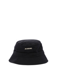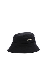 Jacquemus "Gadjo" bucket hat made of cotton with compact texture and soft structure. The construction features a rounded dome and flexible brim finished with prominent topstitching along the edge. The design incorporates an adjustable drawstring with visible topstitching, to be tied at the back, which helps define the functional silhouette. Distinctive silver metal logo detail applied to the side. || - Jacquemus logo in silver metal - Adjustable drawstring with visible topstitching, knottable bow at back - Made of cotton 100% cotton SKU: 223AC0015001990 Our Products Are 100% Genuine. In All Cases We Stand By The Authenticity Of Every Product Sold On Our Site. All sales are final and we only accept returns for quality issue. Buyer is responsible for any import tax/duty if applicable.