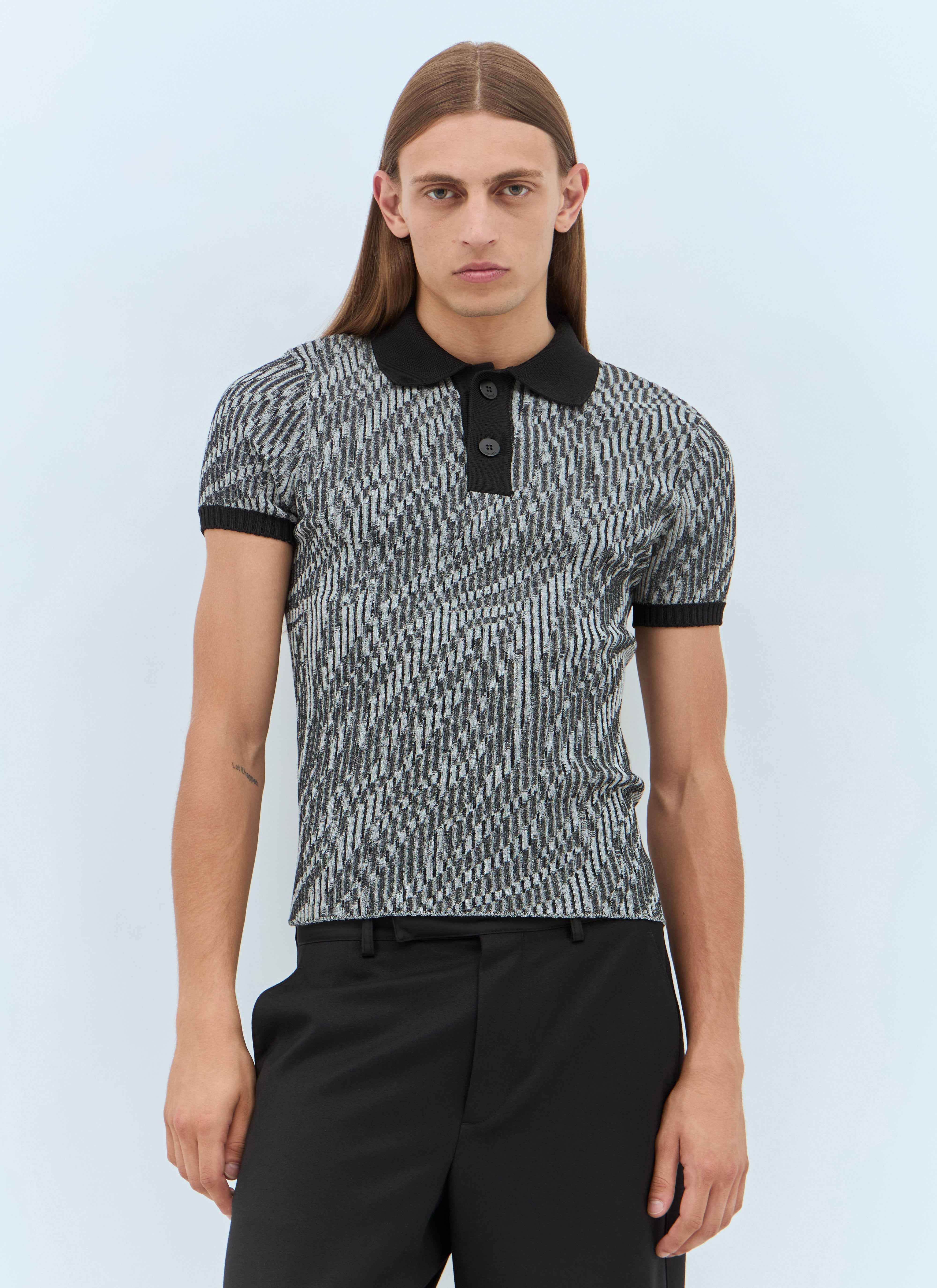 Knit polo shirt in zebra jacquard. Polo collar Front button fastening Short sleeves Contrast trims 60% Cotton, 20% Polaymide, 20% Viscose. Hand wash 24H246KN512-2373 9DZ SKU: 24H246KN51223739DZ Our Products Are 100% Genuine. In All Cases We Stand By The Authenticity Of Every Product Sold On Our Site. All sales are final and we only accept returns for quality issue. Buyer is responsible for any import tax/duty if applicable.