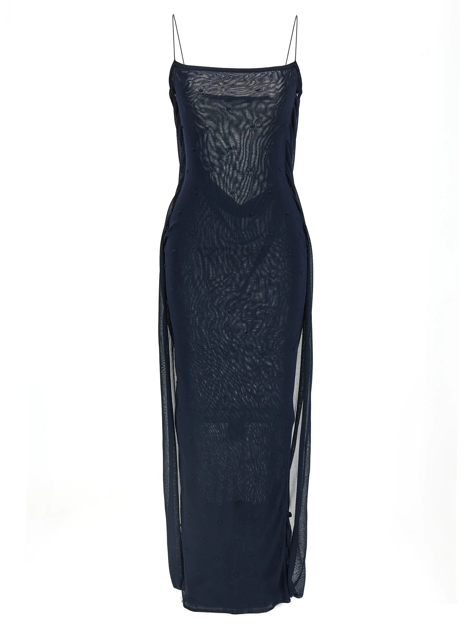 La Robe Maille Plumetis' long dress in semi-transparent jersey with front structured polka dot pattern, lining, front square neckline, thin straps, sleeveless, wide draped hood neckline at the back with insert that falls to the bottom of the garment, straight silhouette. slim fit - FRENCH size 100% viscose SKU: 26EDRW00813AK00317390 Our Products Are 100% Genuine. In All Cases We Stand By The Authenticity Of Every Product Sold On Our Site. All sales are final and we only accept returns for quality issue. Buyer is responsible for any import tax/duty if applicable.