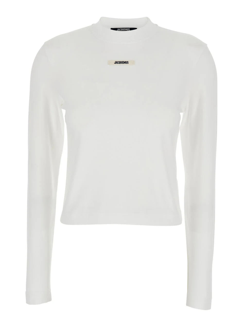 Jacquemus Women 'Le T-Shirt Gros Grain' White Crewneck T-Shirt With Long Sleeves And Logo Patch On T