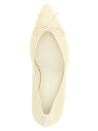 'Les Escarpins Tourni' pointed toe-effect embossed leather pumps with front bow detail, asymmetrical woven heel with lacquered finish, and leather sole. EU WOMAN - Heels: 8 cm 100% calfskin leather (Bos Taurus) SKU: 25HFOW00178AC32A01115 Our Products Are 100% Genuine. In All Cases We Stand By The Authenticity Of Every Product Sold On Our Site. All sales are final and we only accept returns for quality issue. Buyer is responsible for any import tax/duty if applicable.