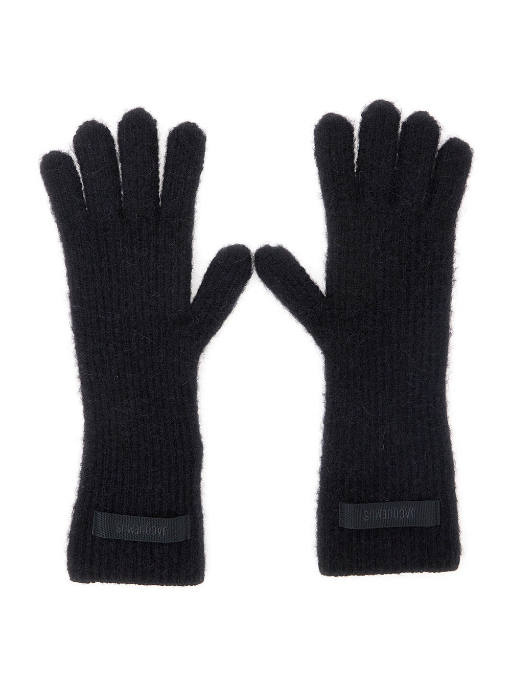 Jacquemus Women 'Les Gants Gros Grain' Black Gloves With Logo Patch On The Front In Wool Blend Woman