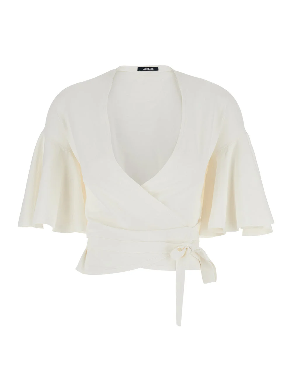 Jacquemus Women White Crossover Neck Top In Tech Fabric Woman