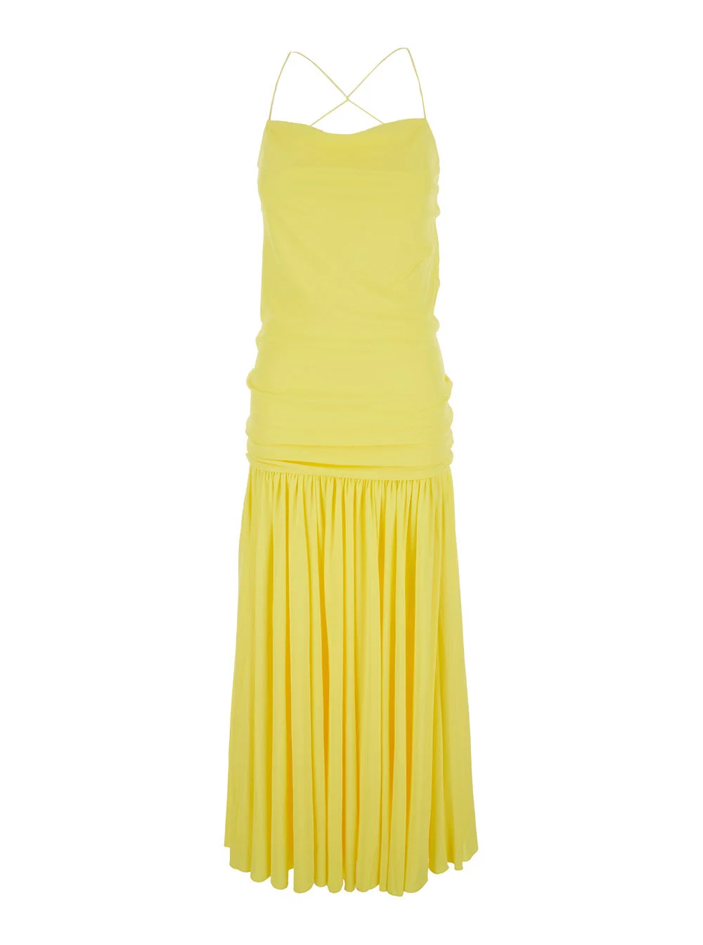Dress Yellow Straight neckline Thin straps that cross at the back Low draped waist Gathered skirt Asymmetrical hem at mid-calf length Tech fabric Regular fit SKU: DRW00792AJ00253250 Our Products Are 100% Genuine. In All Cases We Stand By The Authenticity Of Every Product Sold On Our Site. All sales are final and we only accept returns for quality issue. Buyer is responsible for any import tax/duty if applicable.