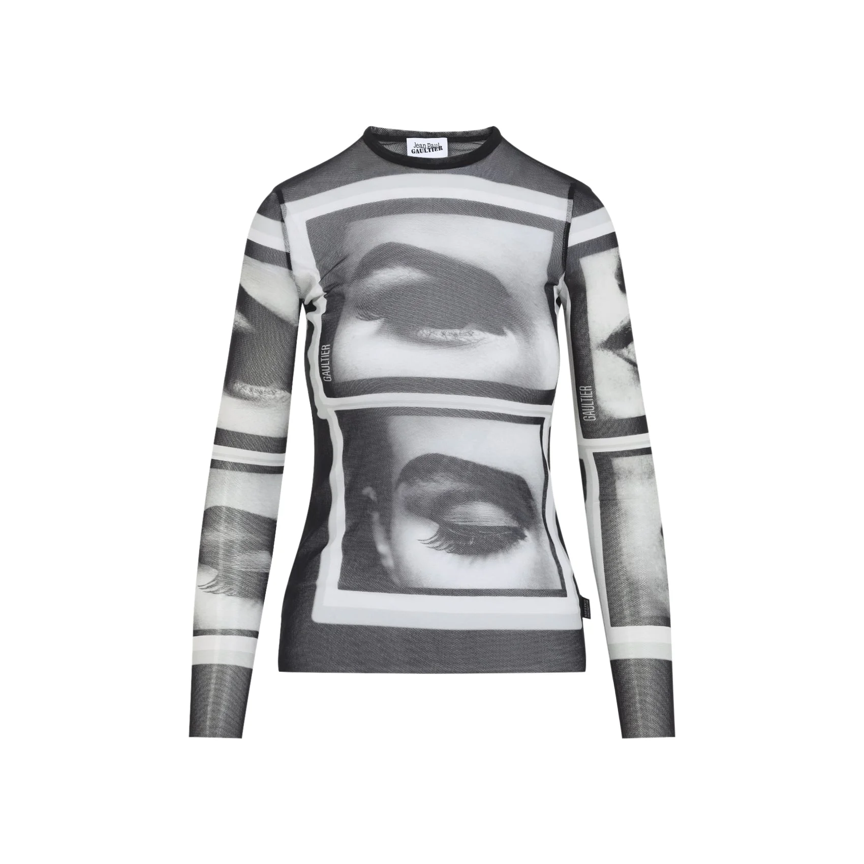 Jean Paul Gaultier Eyes and Lips Black and White Polyamide Top. Crafted from black and white mesh, featuring “eyes and lips” signature print all over, a round neckline, long sleeves, a straight hem, and a slim fit. Polyamide | 100% POLYAMIDE Size Type: INT SKU: 2601WTO450M021PBlack Our Products Are 100% Genuine. In All Cases We Stand By The Authenticity Of Every Product Sold On Our Site. All sales are final and we only accept returns for quality issue. Buyer is responsible for any import tax/duty if applicable.