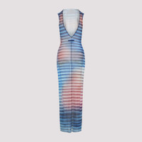 Jean Paul Gaultier Light Blue Mesh Printed "Air" Long Dress. Pure polyamide fabric, draped neck, open back, sleeveless, feet-length, straight hem. Inspired by air, features fluid prints, blue and peach details, stripes all-over. Polyamide | 100%POLYAMIDE Size Type: INT SKU: 2503WDR031M005P565034Multicolour Our Products Are 100% Genuine. In All Cases We Stand By The Authenticity Of Every Product Sold On Our Site. All sales are final and we only accept returns for quality issue. Buyer is responsible for any import tax/duty if applicable.