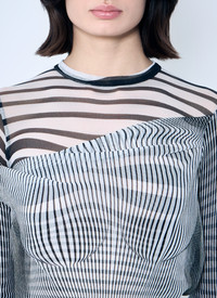 Mesh bodysuit in Pinstripe body morphing and Mariniere body morphing print with draped overlay. Crewneck Snap-button fastening at bottom Long sleeves Open rear Draped overlay 100% Polyamide. Hand wash 25/33-F-BD061-T578-0100 SKU: 2533FBD061T5780100 Our Products Are 100% Genuine. In All Cases We Stand By The Authenticity Of Every Product Sold On Our Site. All sales are final and we only accept returns for quality issue. Buyer is responsible for any import tax/duty if applicable.