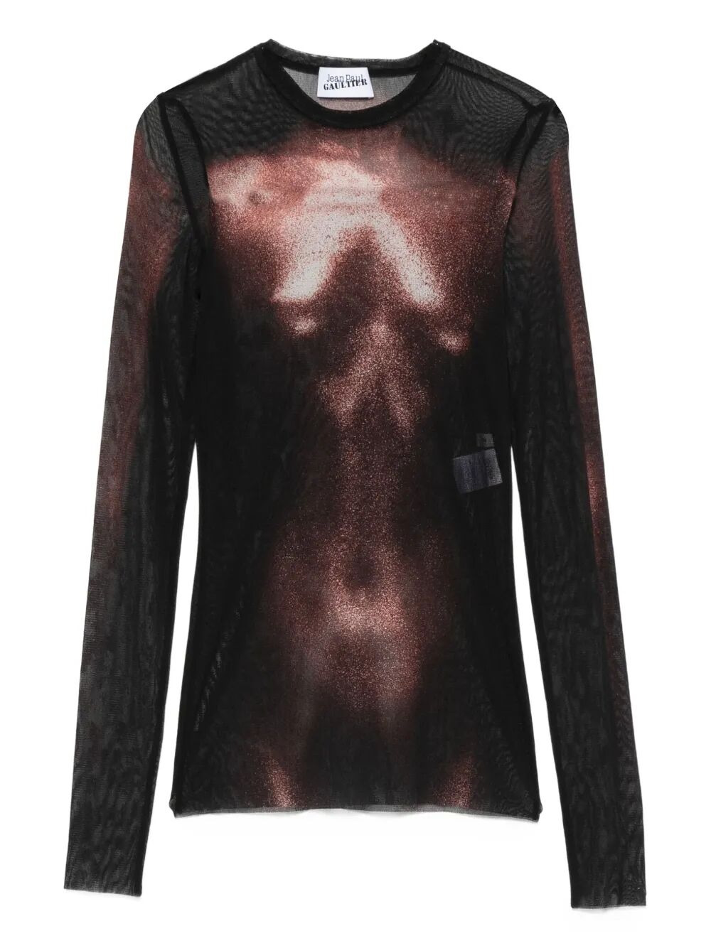 Jean Paul Gaultier Women Mesh Crew Neck Top With Long Sleeves Printed "Body Dust"