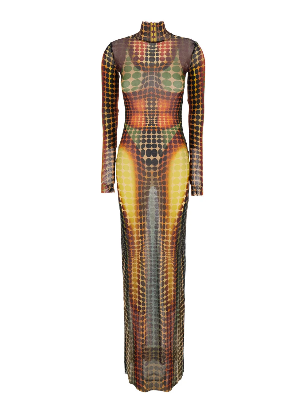 Jean Paul Gaultier Women Multicolor Long Dress With High Neck And All-Over Print In Tech Fabric Woma