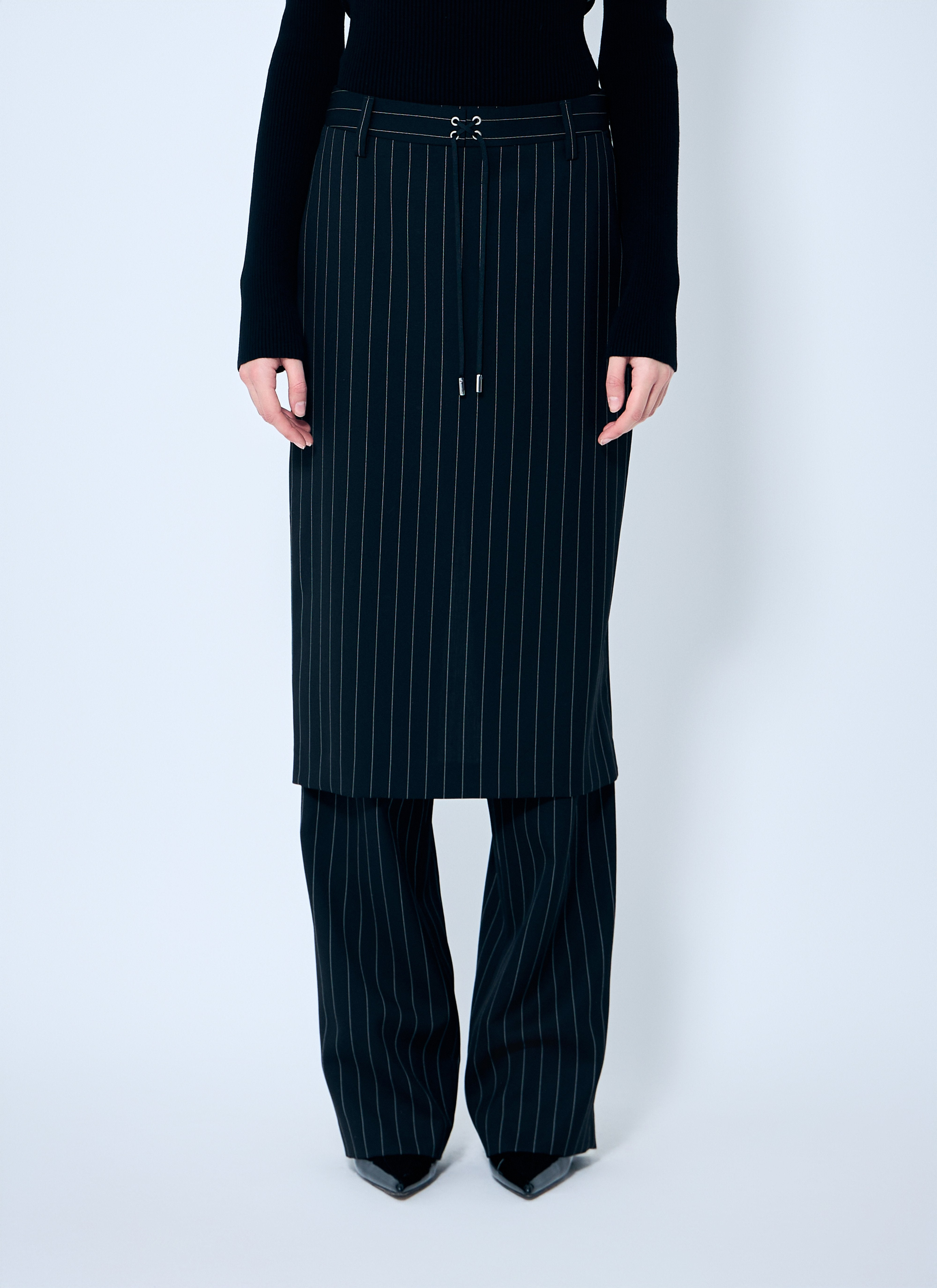 Drawstring pinstripe pants with skirt overlay. Mid rise Drawstring waistband Side zip fastening Belt loops Front skirt overlay Rear welt pockets 100% Wool. Dry clean 25/33-F-PJ010-C074-0001 SKU: 2533FPJ010C0740001 Our Products Are 100% Genuine. In All Cases We Stand By The Authenticity Of Every Product Sold On Our Site. All sales are final and we only accept returns for quality issue. Buyer is responsible for any import tax/duty if applicable.