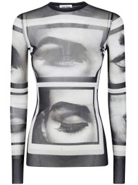 Jean Paul Gaultier Women Re-Edition : Mesh Longsleeve Top Printed "Eyes And Lips"