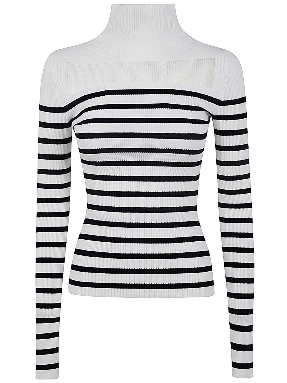 Jean Paul Gaultier Women Ribbed Mariniere Pullover With Transparent Window Detail